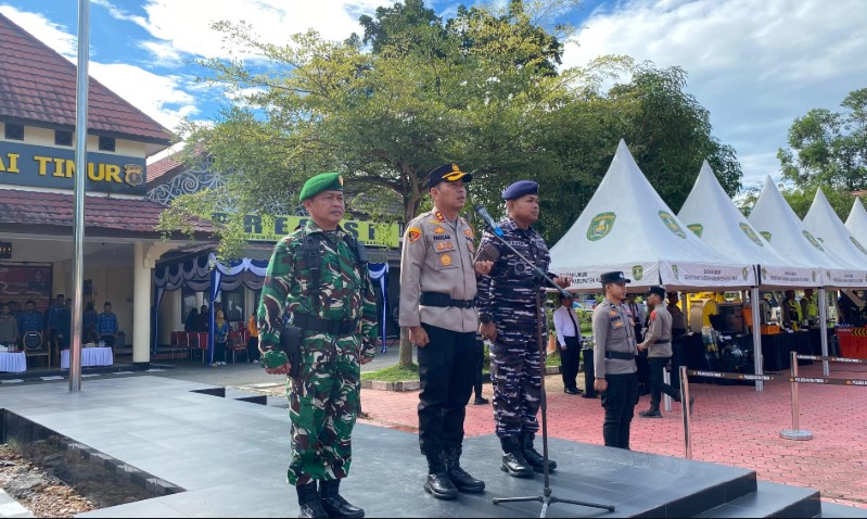 Apel gelar pasukan tersebut dipimpin langsung Kapolres Kutai Timur AKBP Fauzan Arianto selaku Inspektur Upacara di dampingi Pasiop Kodim 09/09 Kapten KAV Muttaqin dan Danlanal Sangatta Letkol (P) Laut Fajar Yuswantoro.