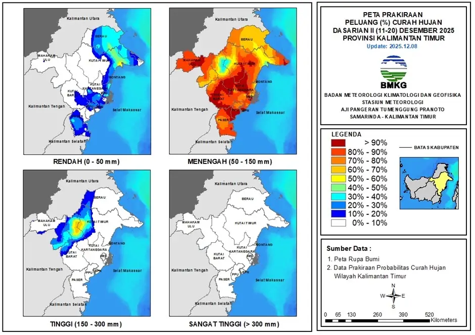 Prakiraan cuaca periode 11–20 Desember 2025 ini menunjukkan ancaman bencana hidrometeorologi, terutama di Kutim bagian barat, yang harus direspons segera oleh Pemkab dan masyarakat.