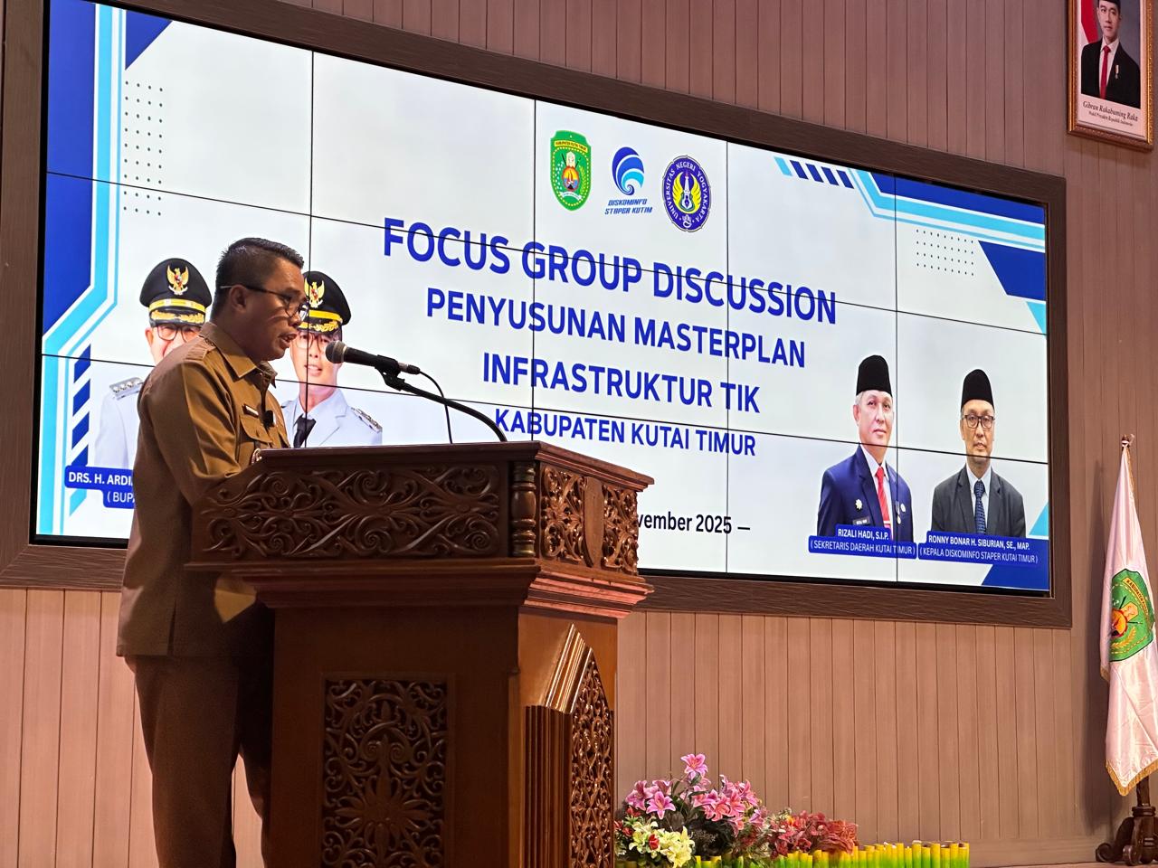 Sangatta News – Dinas Komunikasi, Informatika, Statistik dan Persandian (Diskominfo Staper) Kabupaten Kutai Timur (Kutim) menggelar Focus Group Discussion (FGD) Pendahuluan Penyusunan Masterplan Infrastruktur Teknologi Informasi dan Komunikasi (TIK) Kabupaten yang berlangsung di Ruang Meranti, Kantor Bupati Kutim, Sangatta,  Senin (3/11/2025).