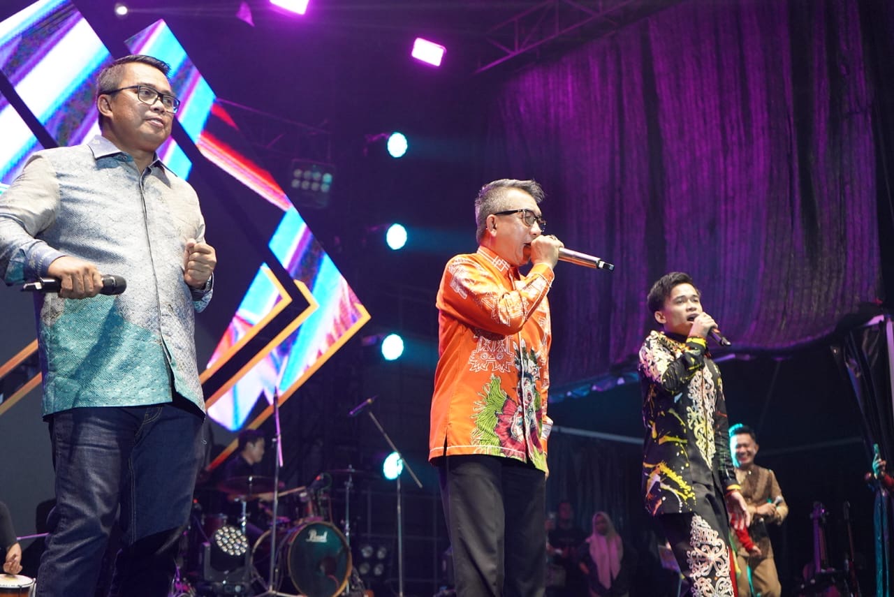Ribuan penonton tampak terhibur, memenuhi area depan panggung sambil sibuk mengabadikan momen melalui gawai masing-masing.