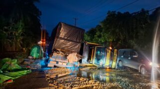 Truk ODOL Jadi ‘Biang Kerok’ Kerusakan Jalan Sangatta-Bontang Mengakibatkan Kecelakaan Beruntun