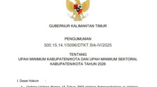 Gubernur Tetapkan UMP dan UMK 2026, Ini Daftar Upah Minimum Kabupaten/Kota di Kaltim