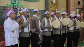 Tim Hadroh Polres Kutim Tampil Memukau saat Peringatan Maulid Nabi di Masjid Al-Faruq