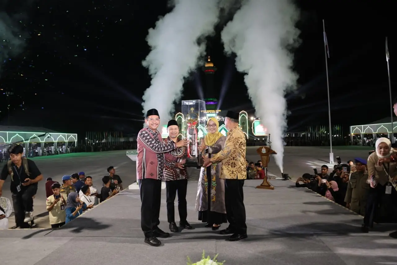 Penyerahan Piala Bergilir Juara Umum STQHN XXVIII dilakukan oleh Deputi Bidang Koordinasi Penguatan Karakter dan Jati Diri Bangsa Kementerian PMK RI, Prof. Warsito, kepada Ketua LPTQ Provinsi Kaltim, menandai berakhirnya kegiatan nasional tersebut.