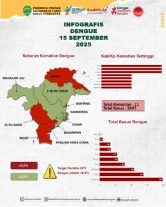Sangatta News – Kasus kematian akibat Demam Berdarah Dengue (DBD) masih terjadi di berbagai daerah di Provinsi Kalimantan Timur (Kaltim). Hingga 19 September 2025, tercatat 11 orang meninggal dunia akibat penyakit yang berasal dari nyamuk itu.