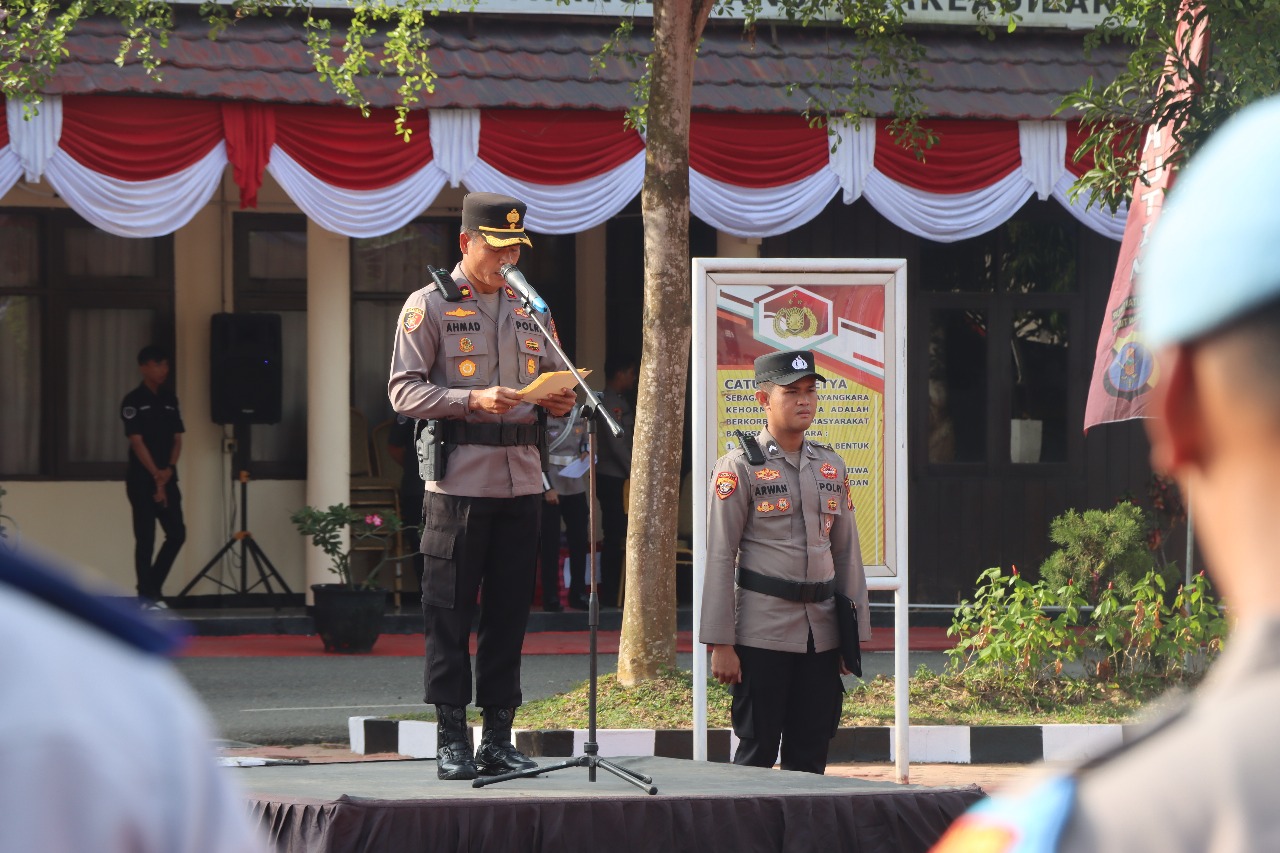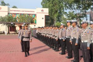 Apel gelar pasukan dipimpin Kapolres Kutai Timur, AKBP Fauzan Arianto, S.H., S.I.K., M.H., diwakili Wakapolres Kutai Timur, Kompol Ahmad Abdullah, S.H., M.H. Turut hadir dalam kegiatan ini Asisten Pemerintahan Umum dan Kesra Seskab Kutai Timur Poniso Suryo Rengono, Kasatpol PP Fata Hidayah, Pejabat Utama Polres Kutai Timur, perwakilan TNI, dan instansi terkait lainnya, menunjukkan sinergi kuat antarlembaga.
