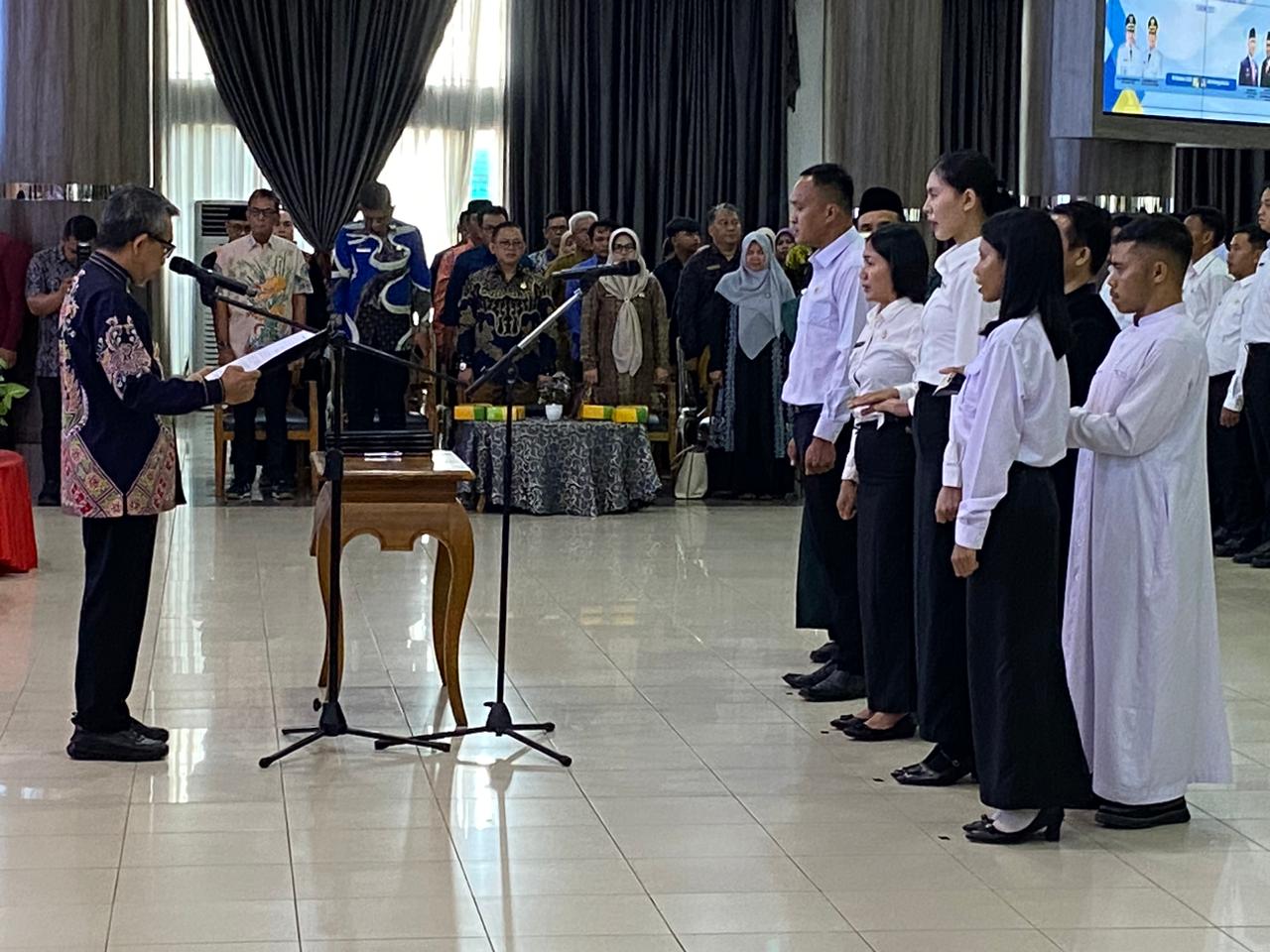 Bupati Ardiansyah Sulaiman langsung memimpin jalannya pengambilan sumpah/janji jabatan para Aparatur Sipil Negara (ASN) yang sebelumnya merupakan tenaga honorer tersebut turut disaksikan Wakil Bupati Mahyunadi, unsur pimpinan Forkopimda, Beberapa Kepala Perangkat Daerah, serta undangan lainya.