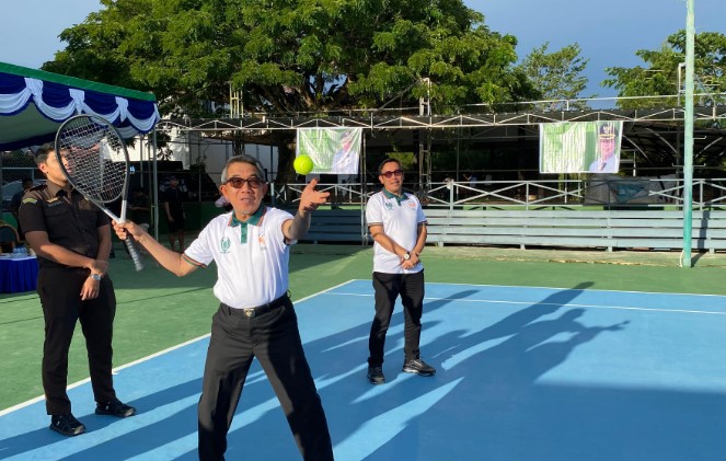 Sangatta News – Open Tournament Tenis Lapangan Bupati Cup Tahun 2025 resmi bergulir. Ajang olahraga sarat gengsi yang baru pertama kali digelar ini dibuka langsung Bupati Ardiansyah Sulaiman ditandai dengan pemukulan bola tenis di Lapangan Tenis Bukit Pelangi Sangatta, Kamis (4/12/2025) sore.