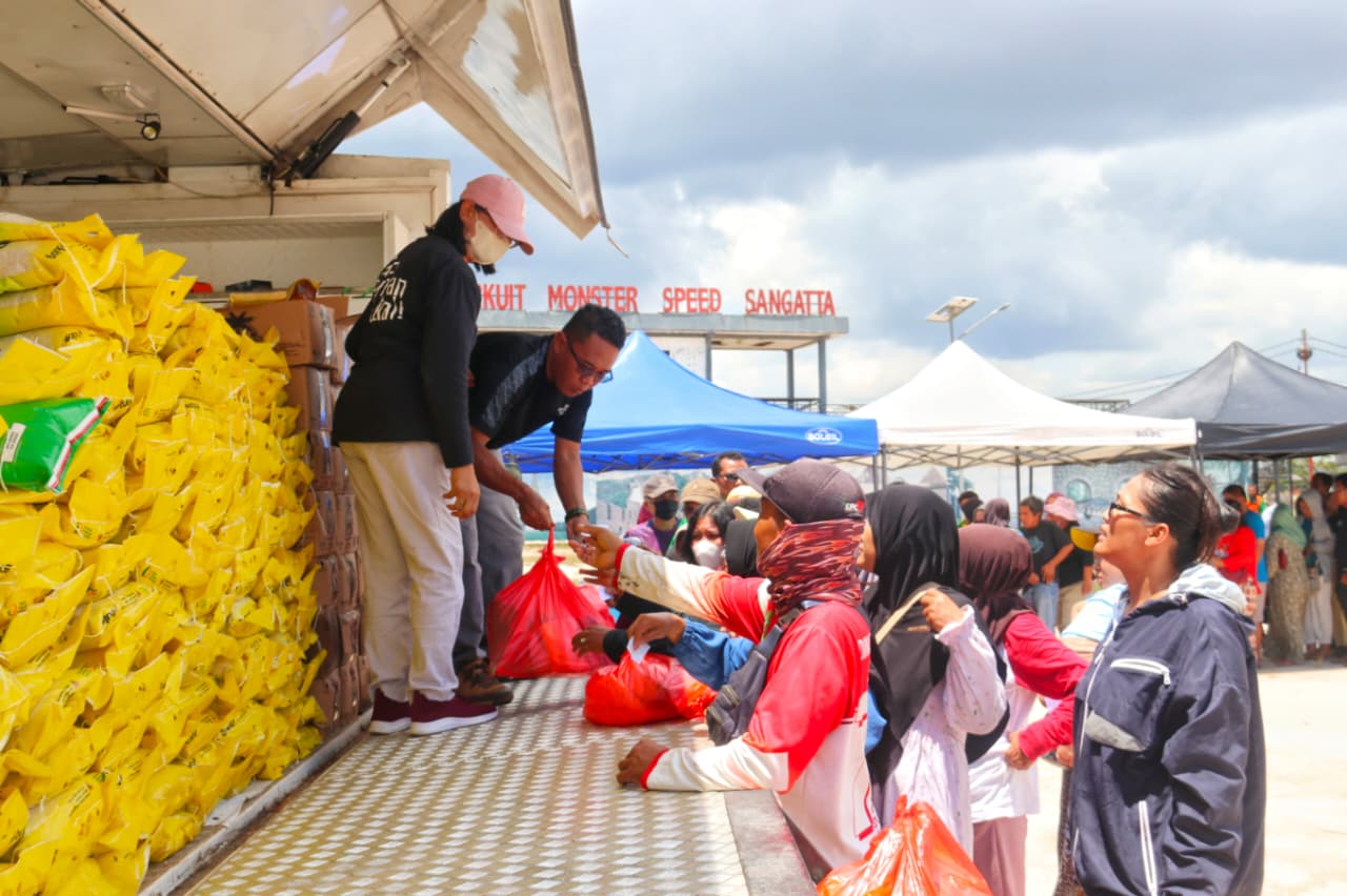 Sangatta News – Gerakan Pangan Murah (GPM) kembali digulirkan Pemerintah Kabupaten Kutai Timur (Pemkab Kutim). Sebanyak 4 ton beras ukuran 5 kilogram, minyak goreng dan gula ukuran 1 kilogram disediakan dalam kegiatan yang berlangsung di Polder Ilham Maulana, Teluk Lingga, Sangatta, Kamis (16/10/2025).