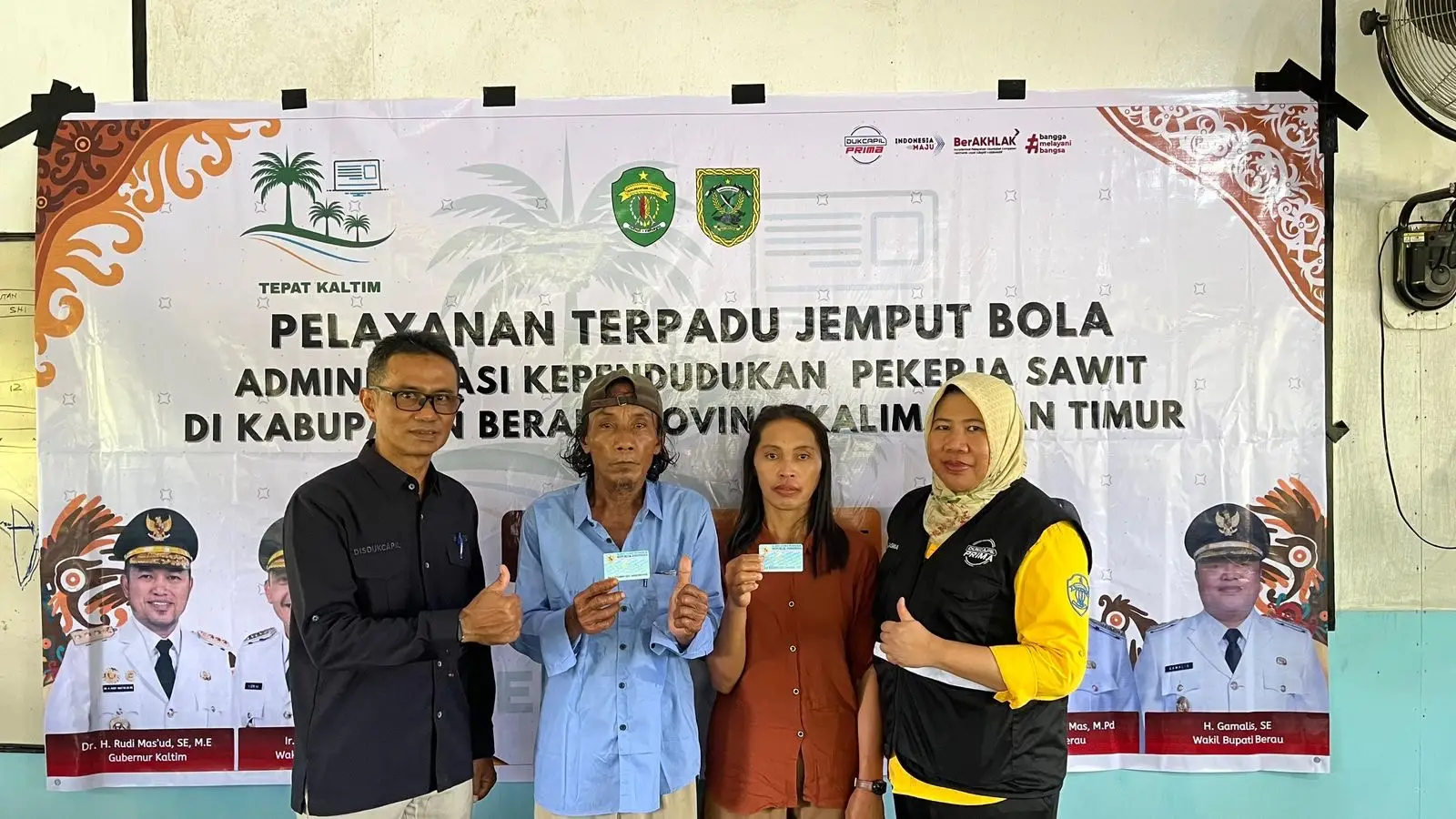 Melalui sinergi tiga lembaga Disdukcapil (Provinsi, Kutim, dan Berau), Layanan Terpadu Jemput Bola berhasil melayani total 627 pekerja sawit beserta anggota keluarga PT. Bina Karya Nuansa Sejahtera (PT. BKNS) yang berdomisili di wilayah Sangkulirang (Kutim) dan Talisayan (Berau).
