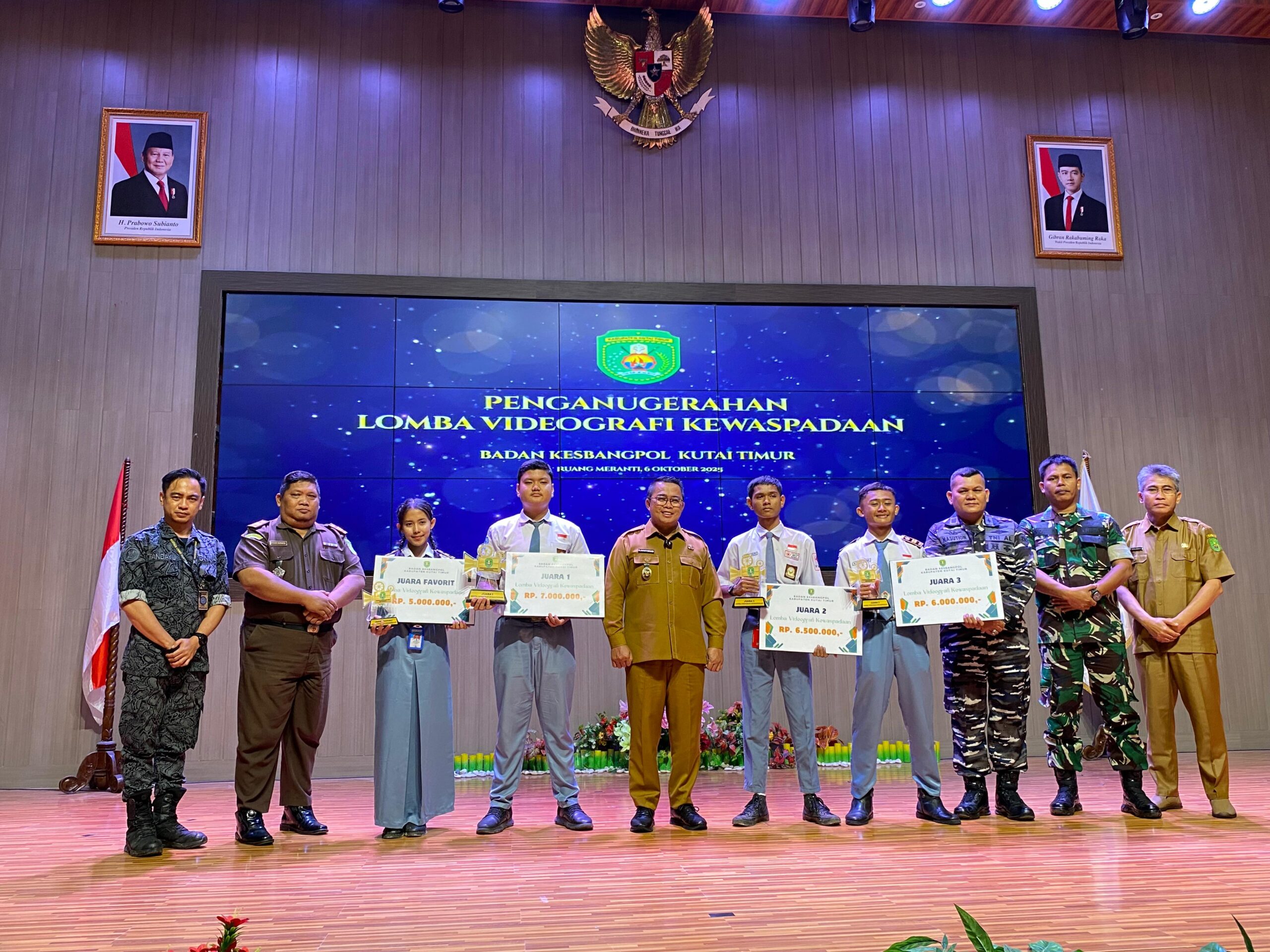 Sangatta News – Wakil Bupati Kutai timur (Kutim) Mahyunadi, menghadiri penganugerahan lomba Videografi Kewaspadaan yang digelar Badan Kesatuan Bangsa dan Politik (Kesbangpol), di Ruang Meranti, Kantor Sekretariat Kabupaten, Kawasan pemerintahan Bukit Pelangi Sangatta Utara, Senin (06/10/2025).