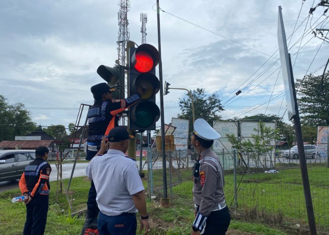 Sangatta News – Satuan Lalu Lintas (Satlantas) Polres Kutai Timur bersama Dinas Perhubungan (Dishub) melakukan perawatan Alat Pemberi Isyarat Lalu Lintas (APIL) di sejumlah titik rawan, Kamis (11/9/2025).